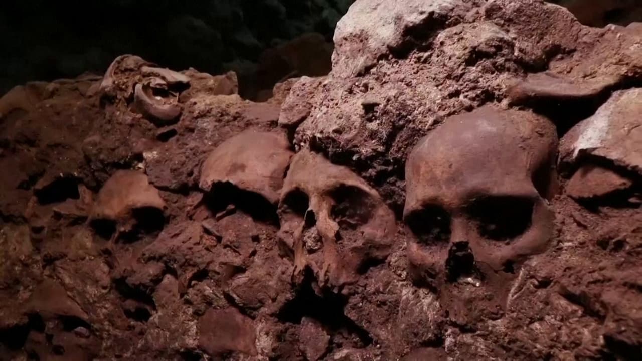 En video: Descubren 119 cráneos humanos de hombres, mujeres y niños de una torre azteca en el centro de México