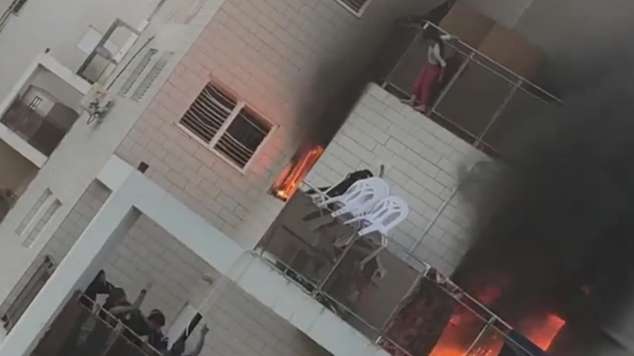En video: El increíble salto de una niña para huir de un apartamento en llamas