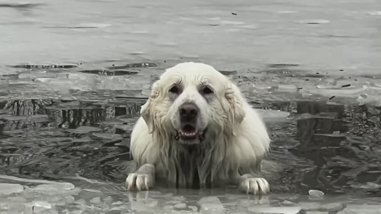 En video: El rescate de un perro de 120 libras atrapado en un estanque helado