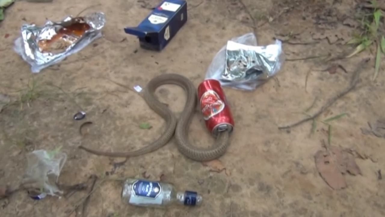 En video: el rescate de una serpiente cobra con la cabeza atrapada en una lata de cerveza