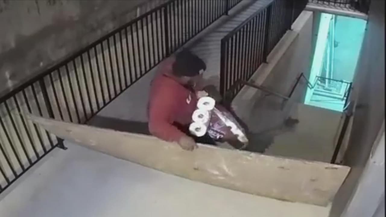 En video: Hombre entra a un teatro y se roba hasta el papel higiénico del lugar