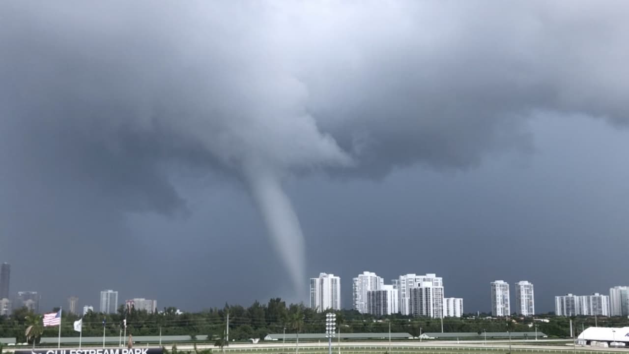 Una intimidante tromba marina fue captada en video cerca de Golden Beach, en el Condado Miami-Dade. La manga de agua se desplazó amenazante cerca de la costa, aunque no causó daños materiales en el área residencial.