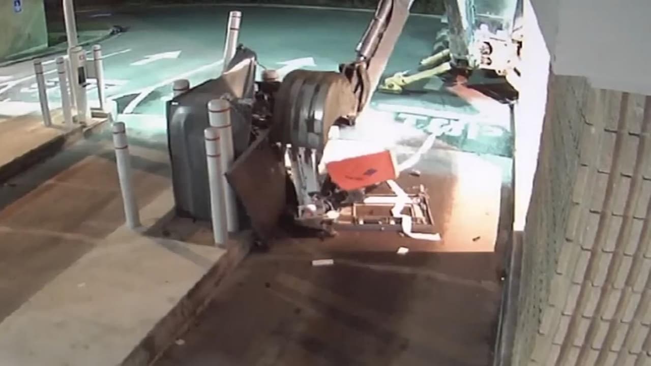 El incidente que fue captado por una cámara de vigilancia ocurrió en Maryland donde la policía busca al conductor del tractor, a quien también acusan de robarse la maquinaria pesada.