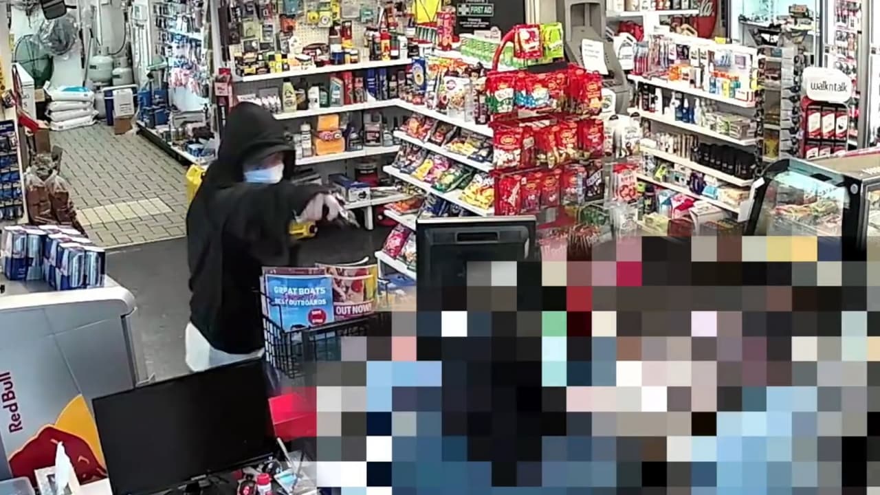 Un hombre utilizó una pistola de juguete para asaltar una estación de servicio en el sur de Australia, y la policía publicó el video para pedir ayuda en su identificación.