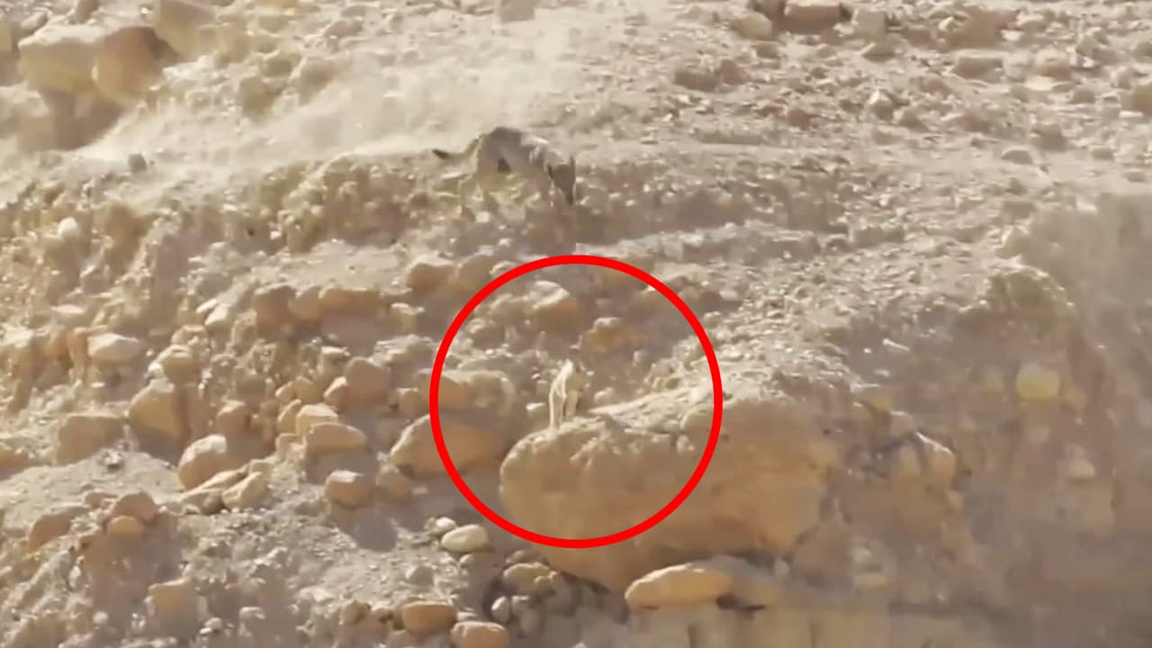 Las cabras salvajes son famosas por su movilidad segura sobre las rocas, pero este lobo es igual de hábil y parece obtener su recompensa. El video fue grabado en Israel.