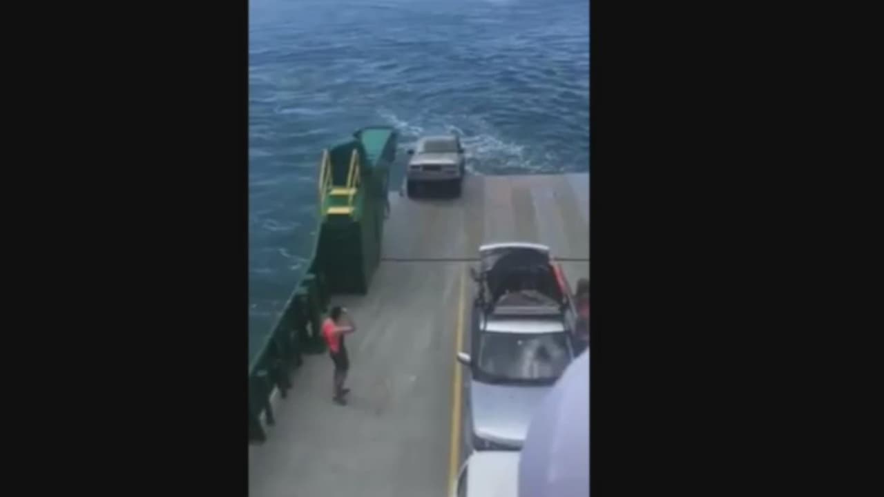 En video: La impresionante caída de un carro desde un ferry en movimiento