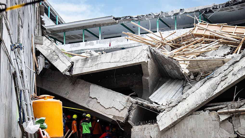 En video: Los rescates de niños bajo los escombros de su escuela en Indonesia
