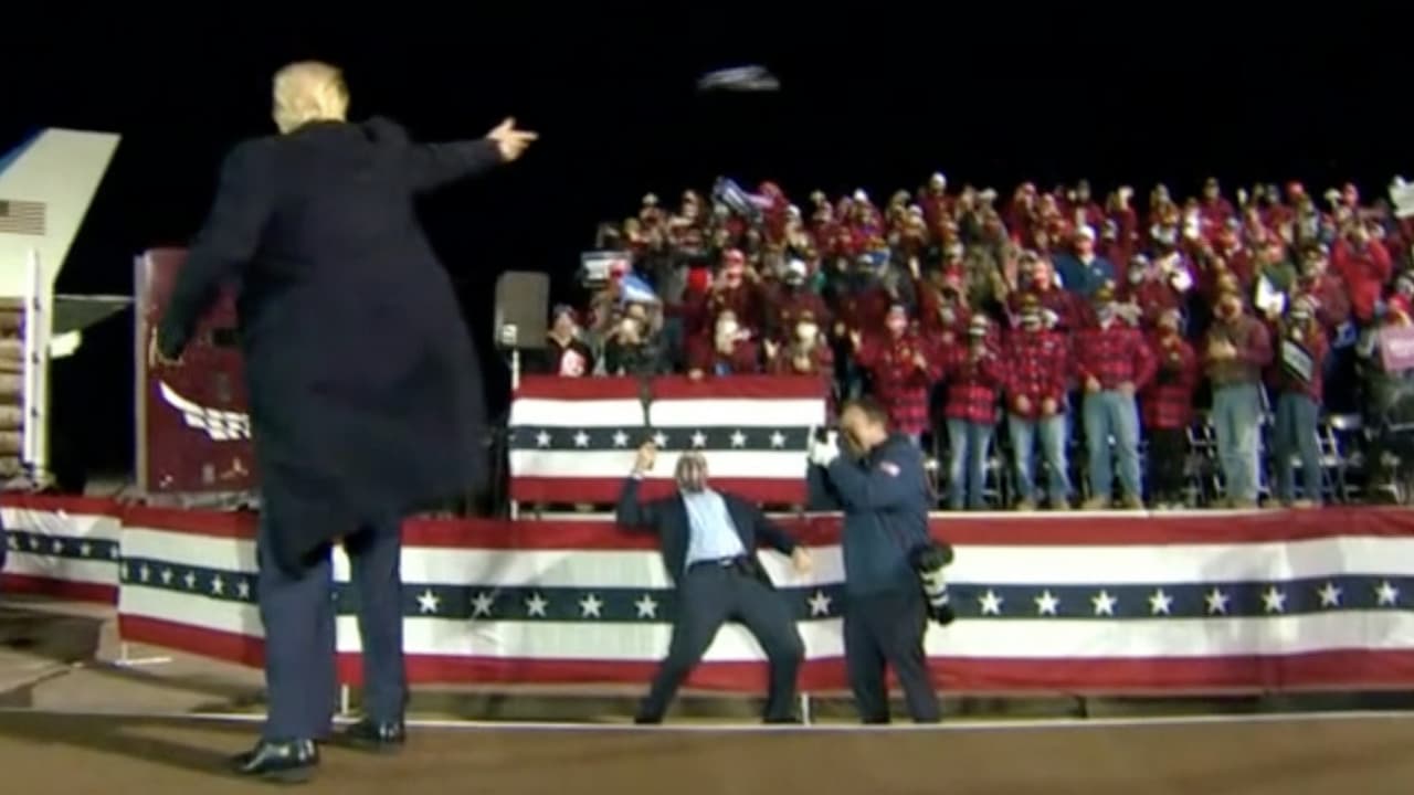En Video: Trump lanzó gorras a sus seguidores horas antes de anunciar que estaba contagiado de covid-19