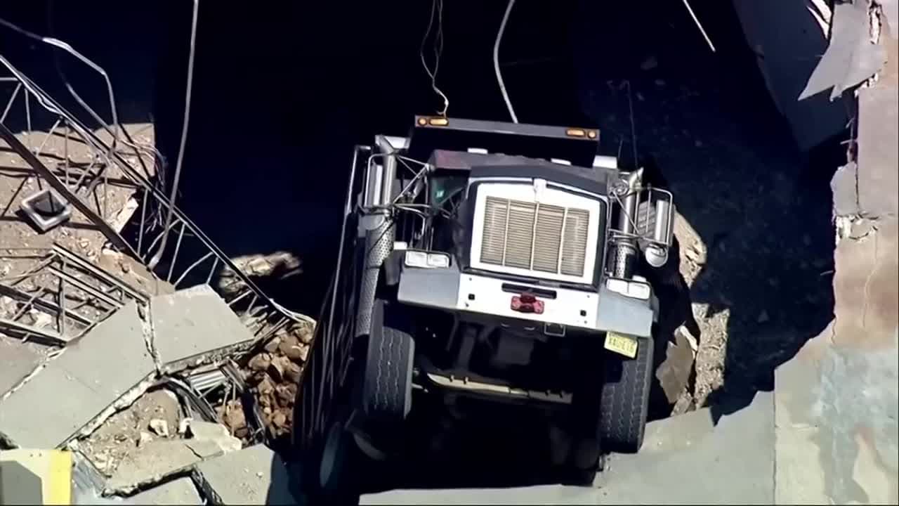 En video: Un agujero gigante en un estacionamiento se traga por completo un camión