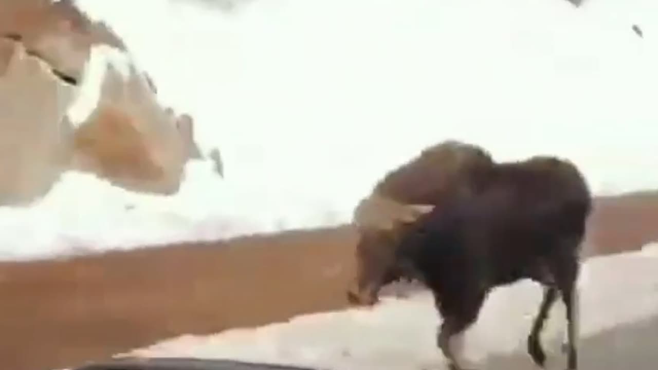 En video: Un alce gigante se cuela entre los autos de una carretera