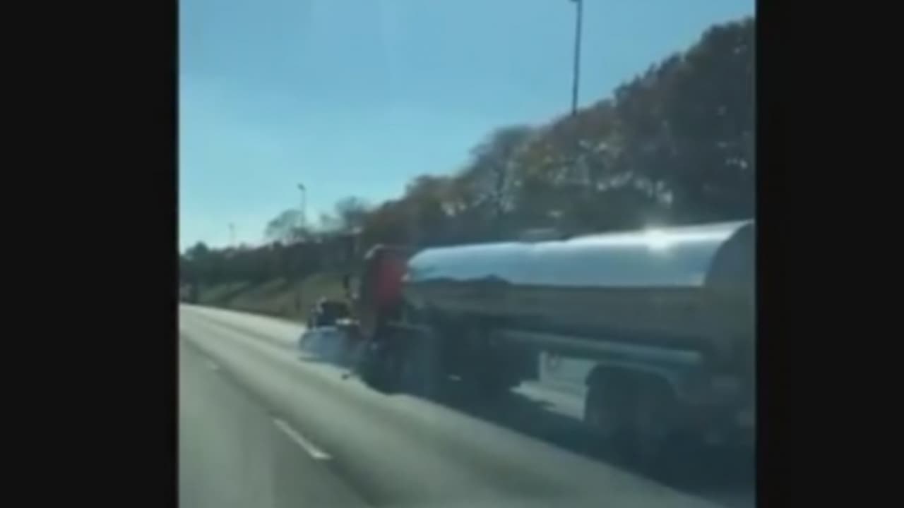 Las imágenes, grabadas por otro conductor, muestran la increíble escena de un camión desplazándose a lo largo de la Interestatal 55 en St Louis, Missouri, mientras el auto se encuentra en la parte delantera atrapado y sin escapatoria.