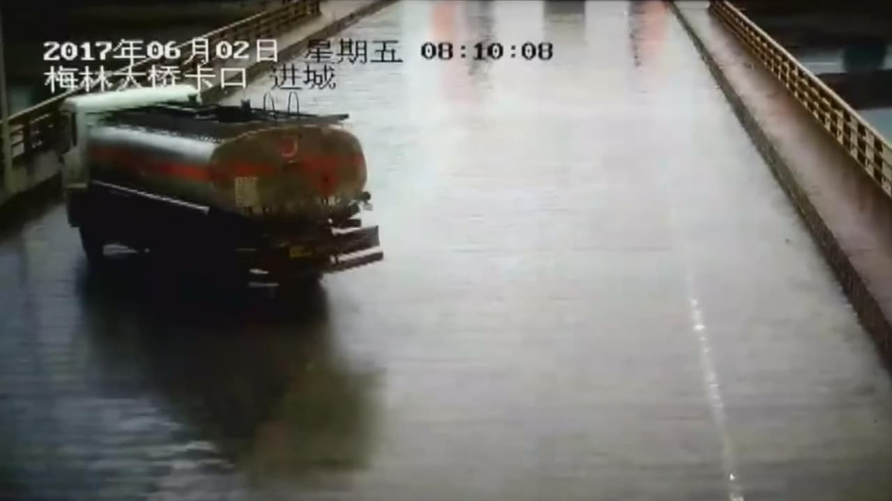 En video: Un camión lleno de gasolina cae de un puente a 40 metros de altura