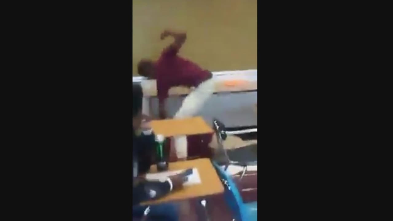En video: Un estudiante golpea a un profesor hasta derribarlo en pleno salón de clase