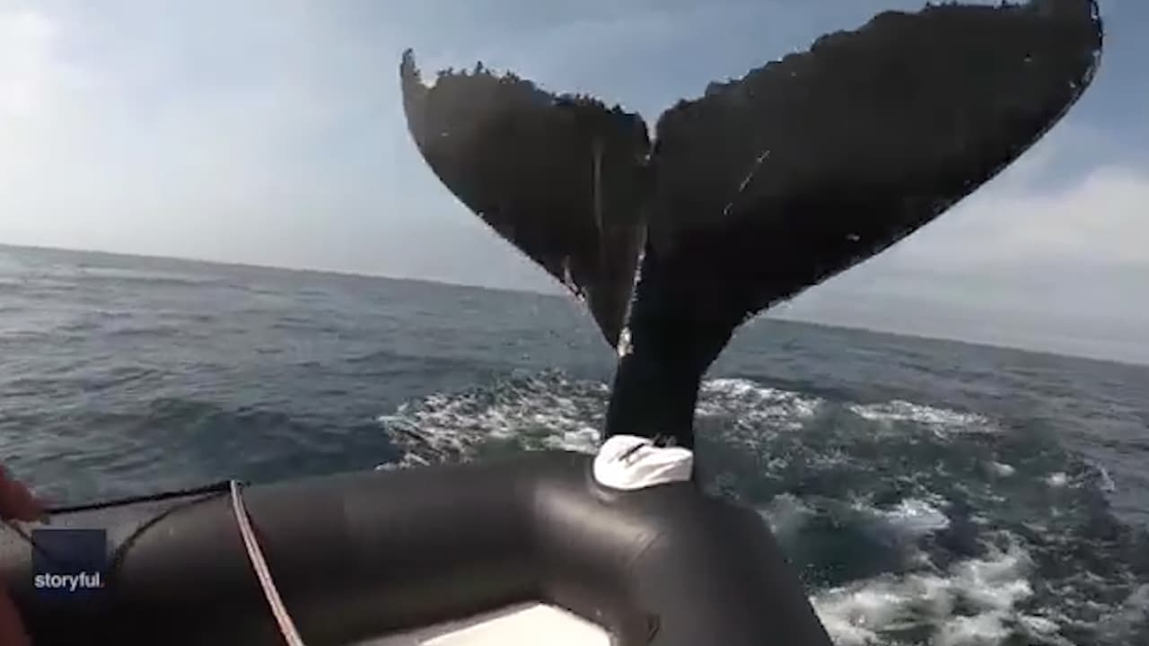 En video: Una ballena da un coletazo a una lancha en mitad del océano