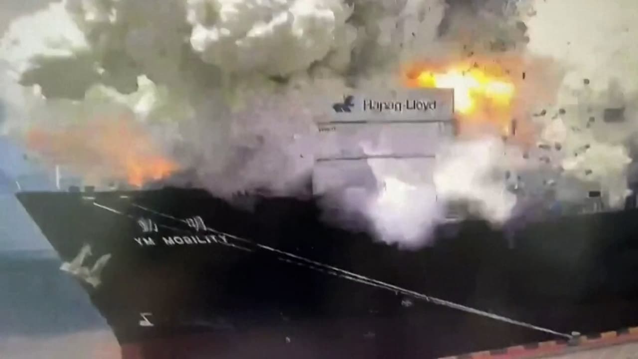 En video: una fuerte explosión produce una bola de fuego en un portacontenedores