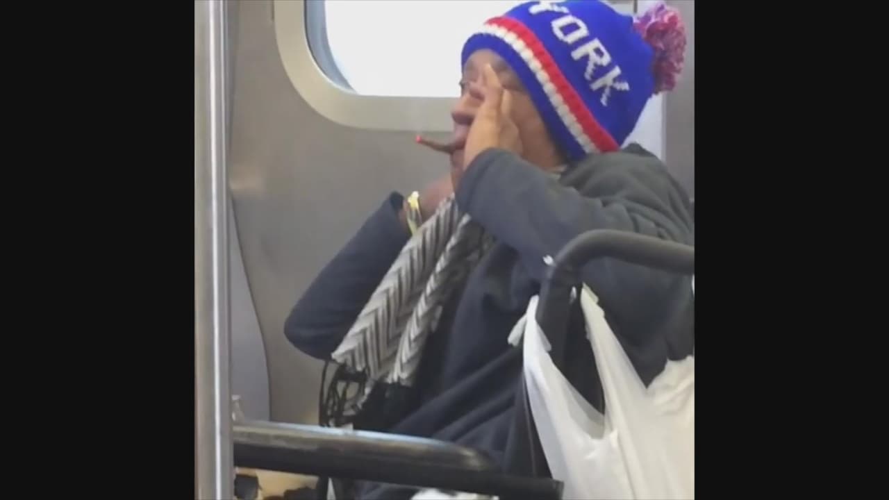 En las imágenes se ve a la señora y un joven discutiendo mientras estaban a bordo del tren M cuando ella comenzó a fumar marihuana adentro del vagón. Las autoridades de transporte recibieron una queja y sacaron a la mujer del vagón.