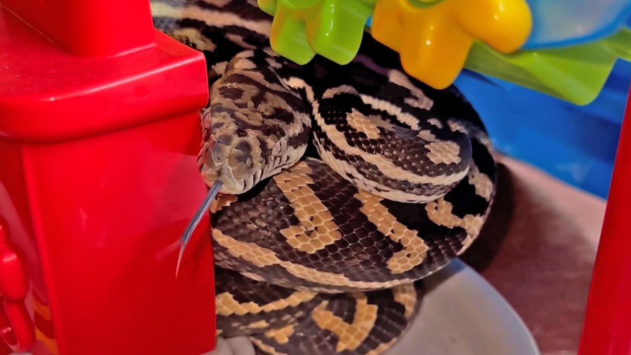Encuentran esta serpiente pitón escondida dentro de un juguete de un niño