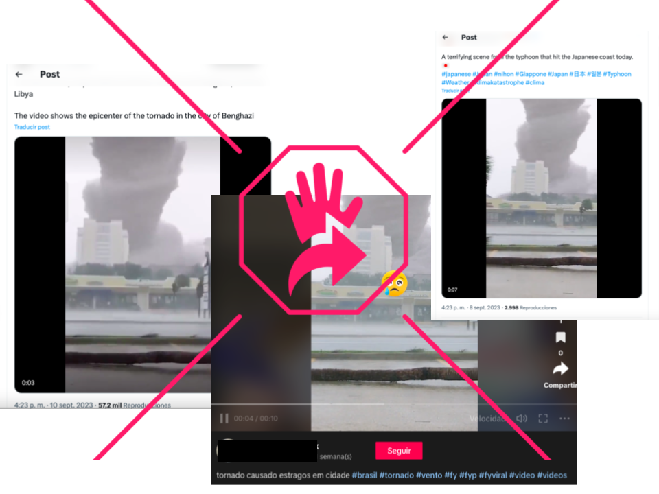 El mismo clip ha sido publicado diciendo que el supuesto tornado fue captado en Brasil, Japón o Libia.