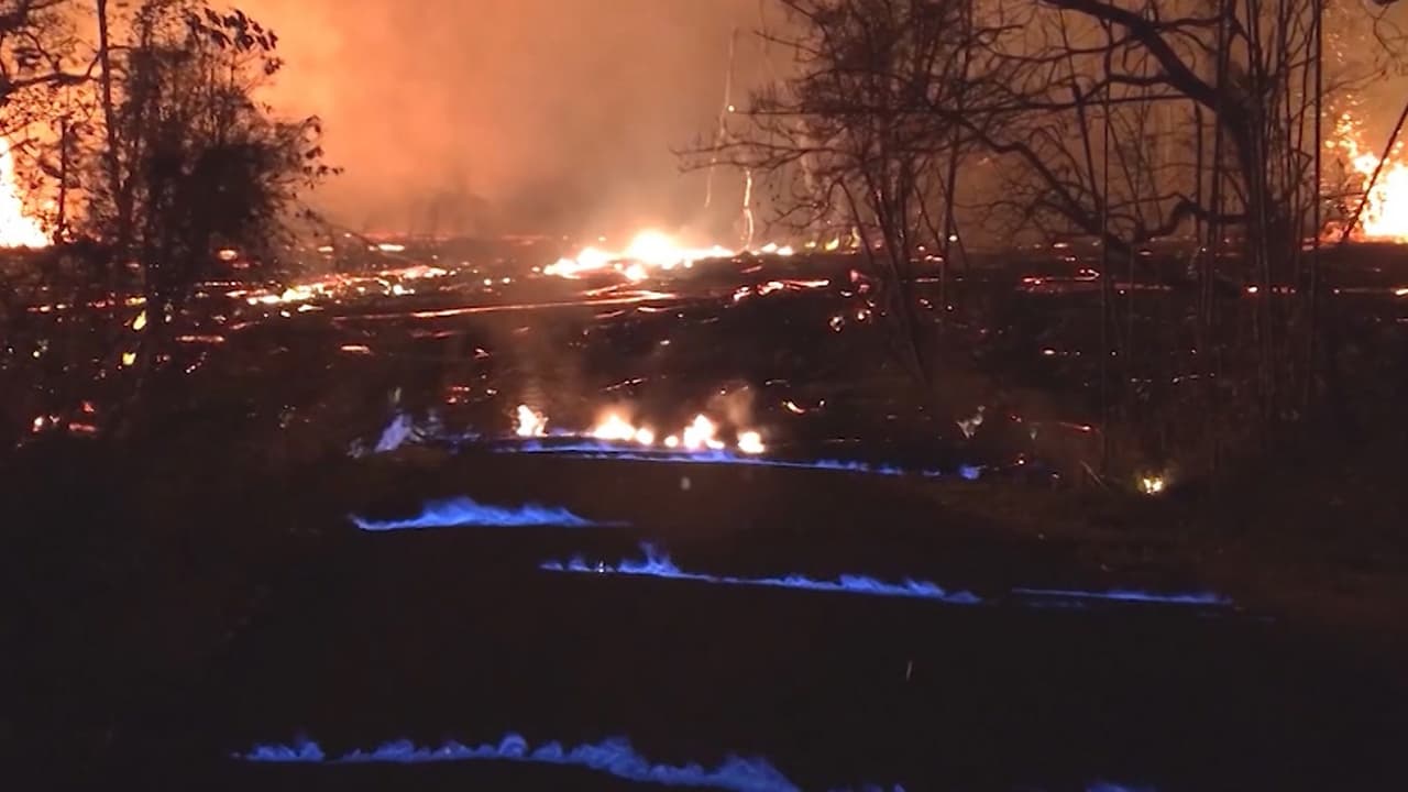 Efectivoss del Cuerpo de Marines de EEUU divisaron desde helicópteros este tercer río de magma cuando evacuaban una comunidad de Big Island antes de que quedara aislada.