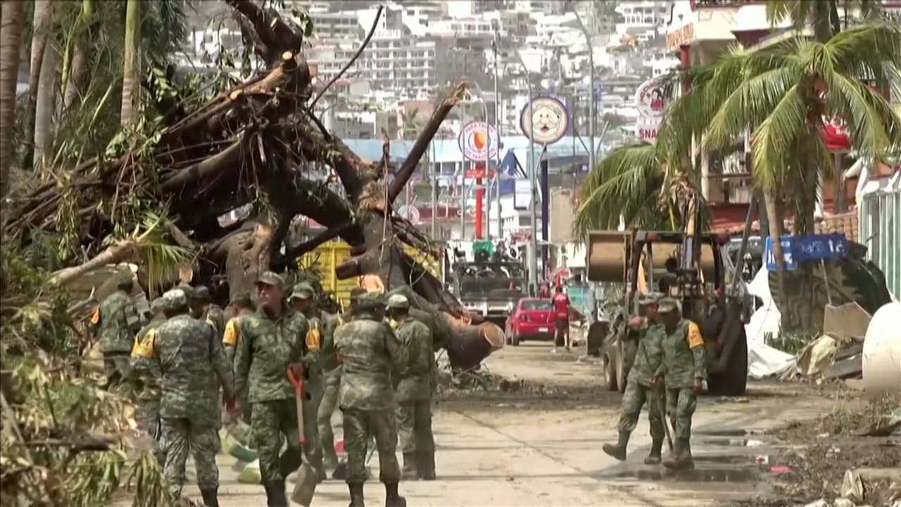 A tres días de que el huracán Otis golpeara Acapulco y otros municipios de la costa de Guerrero con una fuerza nunca vista en el Pacífico mexicano, el Ejército y otras dependencias colaboran con la limpieza de calles.