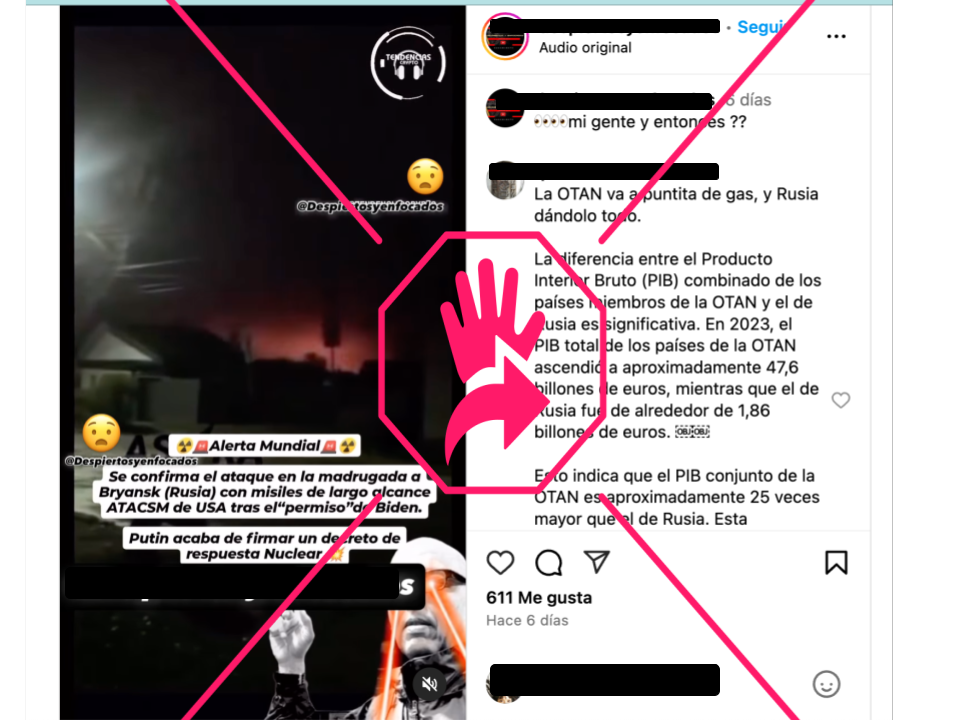 En Instagram circula un video que muestra una serie de explosiones captadas desde tres ángulos distintos para afirmar que se trata de un ataque que Ucrania llevó a cabo en Briansk, Rusia, el 19 de noviembre de 2024, en el cual usó misiles estadounidenses ATACMS, pero eso es falso. Las tres secuencias que conforman la grabación están fuera de contexto, ya que circulan en redes al menos desde el 8 de octubre de 2024, cuando el presidente Joe Biden no había aprobado aún el uso de proyectiles de su país fuera de territorio ucraniano invadido.