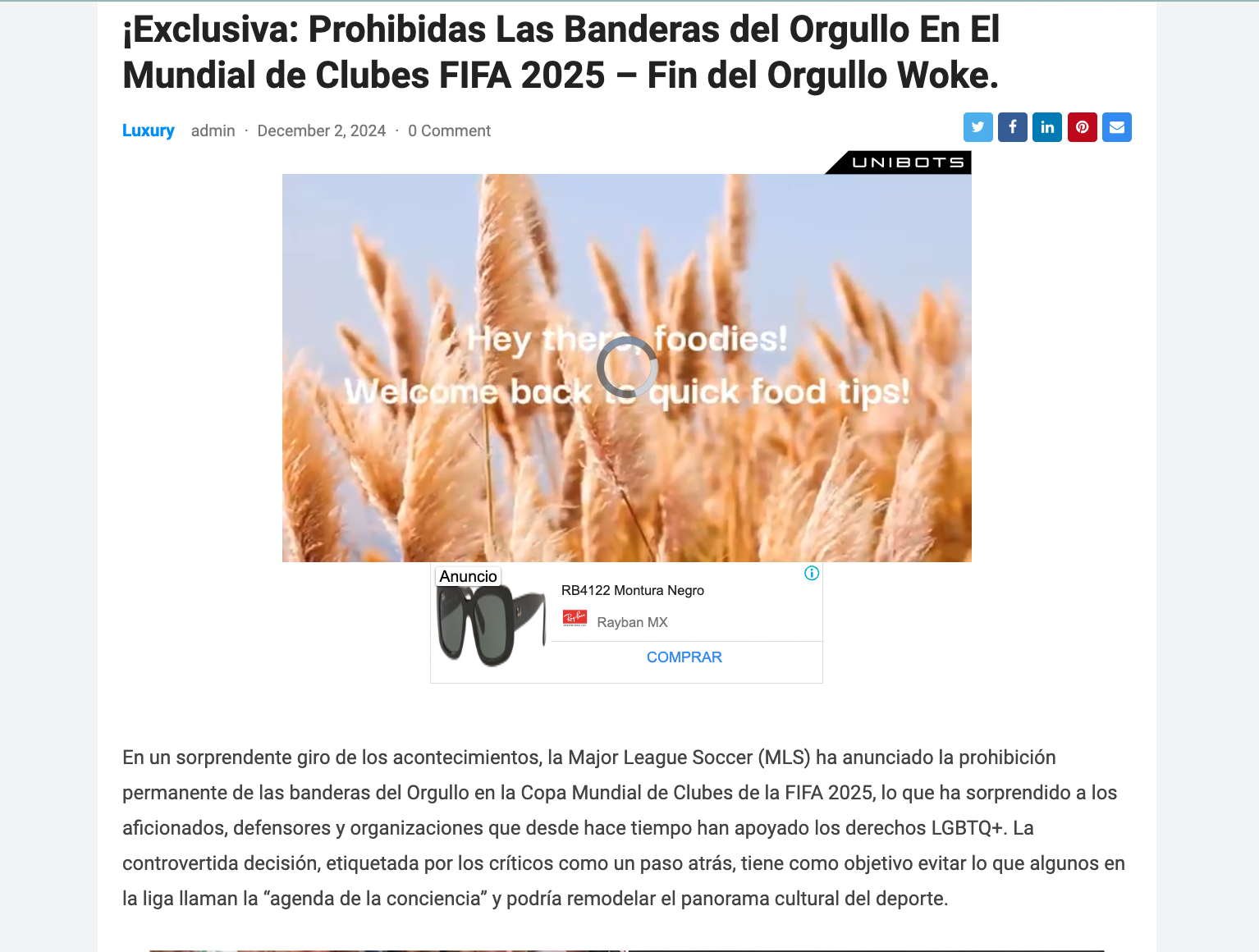 Algunas de las publicaciones incluyen un enlace a una historia en donde se afirma que la prohibición de la MLS ha sido criticada por los defensores de los derechos LGBTQ+.