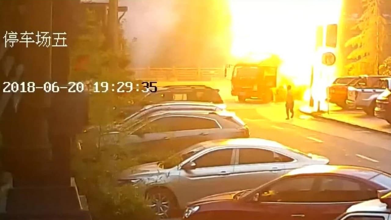 Los primeros informes de las autoridades chinas, indican que la gente tuvo que gritarle al conductor y al pasajero para que salieran corriendo del camión ya que ni siquiera habían notaron las llamas.