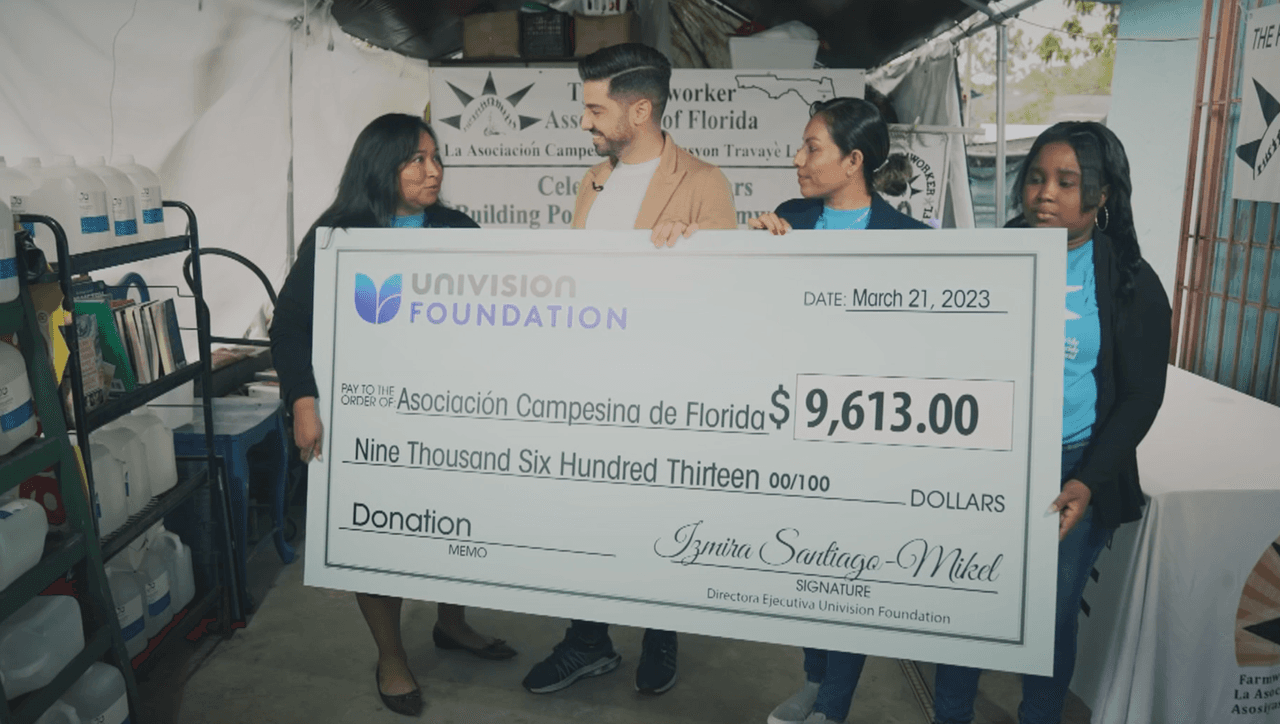 Cuando trabajamos juntos por el bien común, somos más fuertes y podemos lograr un cambio significativo. Así es como continuamos nuestra labor de ayuda a la comunidad, como lo hicimos con la Asociación Campesina de Florida. Únete a nuestra misión ahora mismo visitando Univision.org. Tu donativo es muy importante para nosotros.