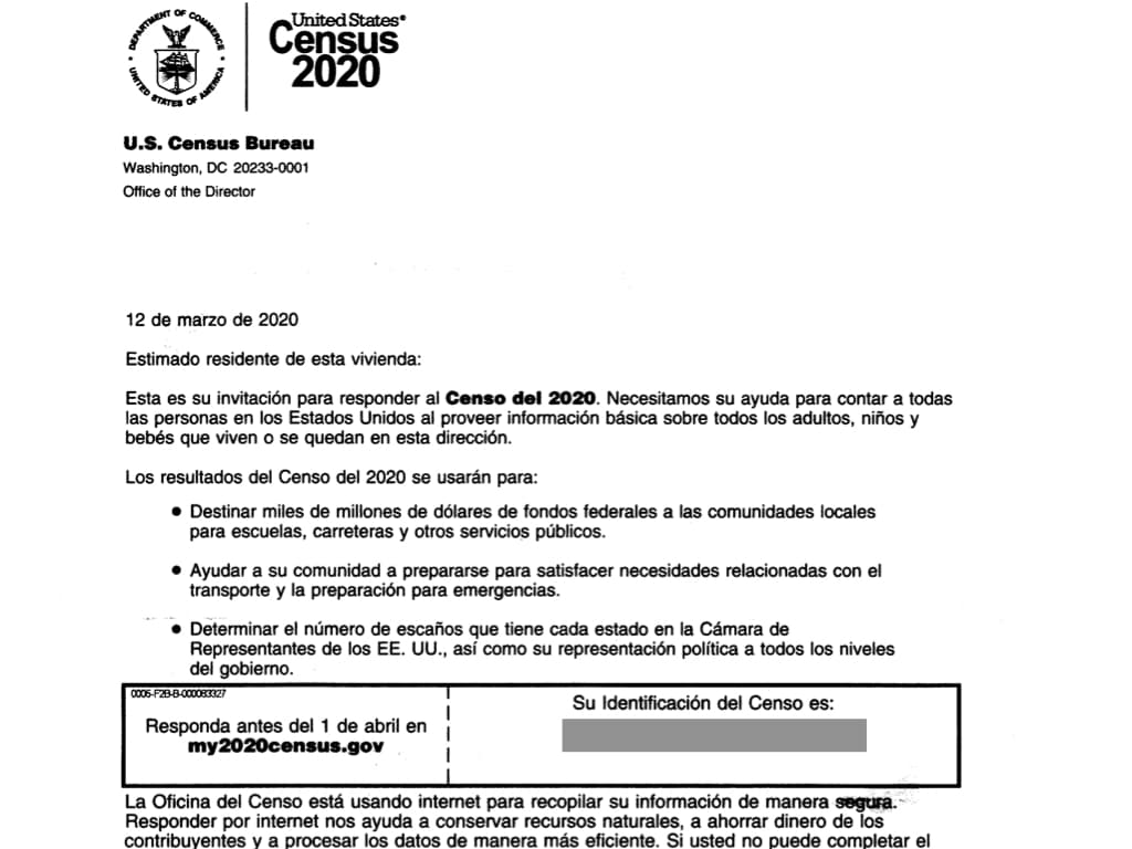 La oficina del censo ha estimado que 5.7 % de la población del país recibirá la carta de invitación tanto en inglés como en español para responder el censo en línea.
