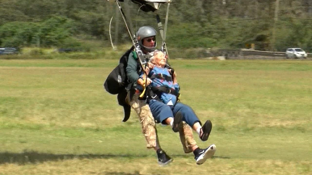 Esta abuela celebró su 91 aniversario lanzándose en paracaídas en tándem