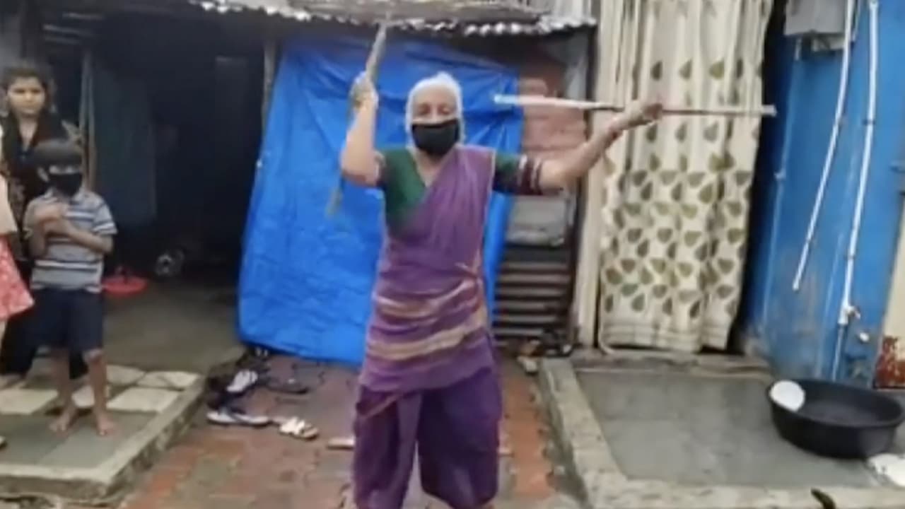 Una anciana de 85 años salió a actuar en la calle con el propósito de ayudar a su familia, que se ha visto afectada económicamente tras el brote de coronavirus en la India. Ella realiza una rutina conocida como lathi-kathi (blandiendo el bastón) y ahora se ha vuelto viral.