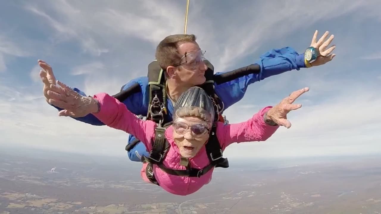 Una anciana de Pennsylvania celebró su cumpleaños 94 saltando en paracaídas a más de 9,000 pies de altura y aseguró que el próximo año lo volverá a hacer.