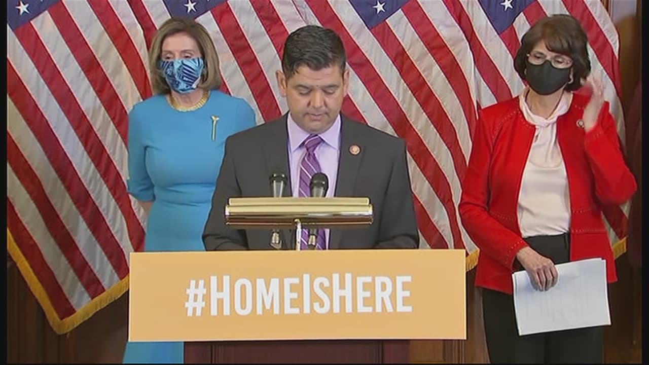 Esta "es la reforma migratoria que necesitamos": el caucus hispano respalda el Dream Act en un acto junto a Pelosi
