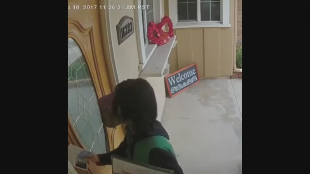 El video captado por la cámara de seguridad de la casa muestra el inesperado momento que la obligó a salir corriendo de la puerta de esta familia.