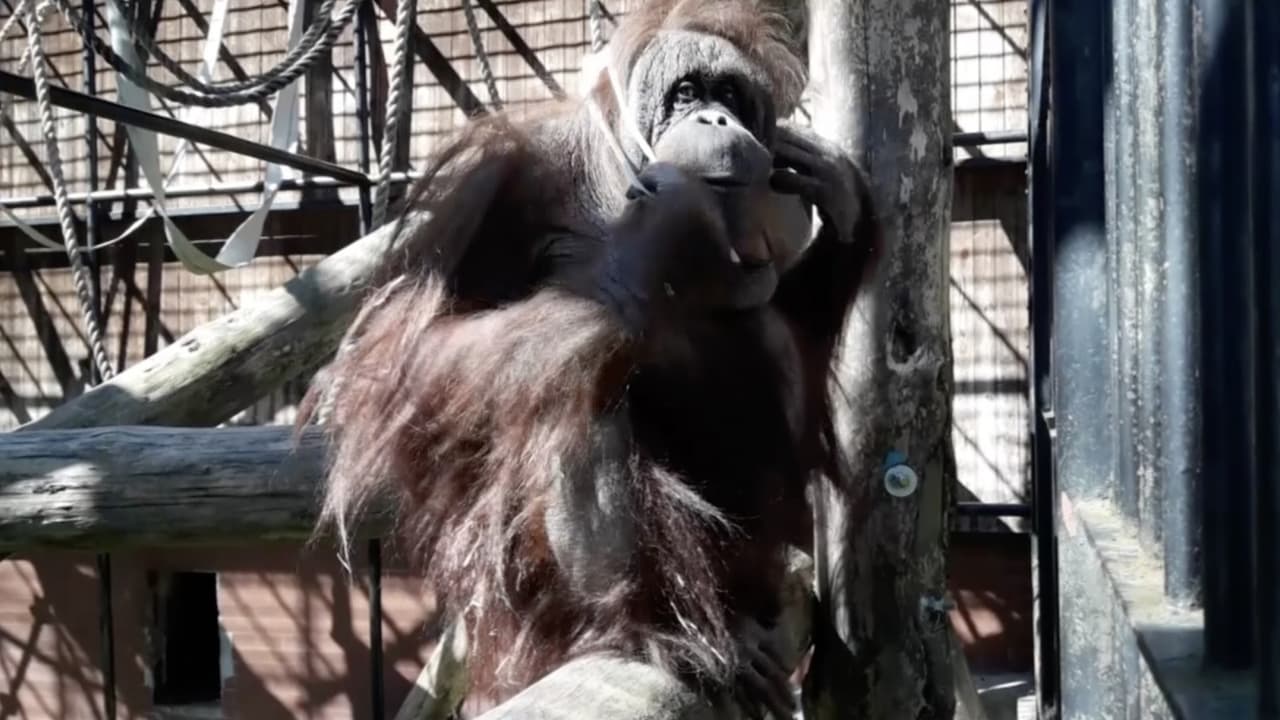 Miembros del personal del zoológico de Gdansk, en Polonia, decidieron entregarle a Raja, una orangután de 46 años, una máscara de las que usan para prevenir la propagación del coronavirus. Esta fue la reacción del simpático simio.