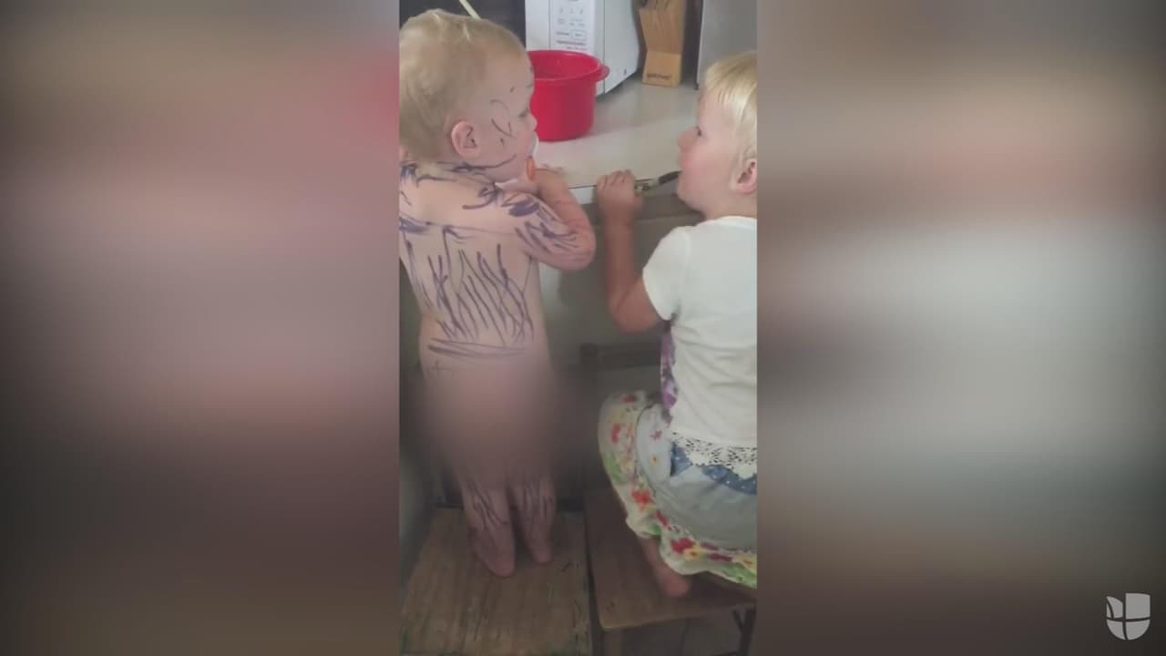 La niña de tres años tiene un profundo amor por las cebras y decidió pintarle rayas a su hermanita con marcador.