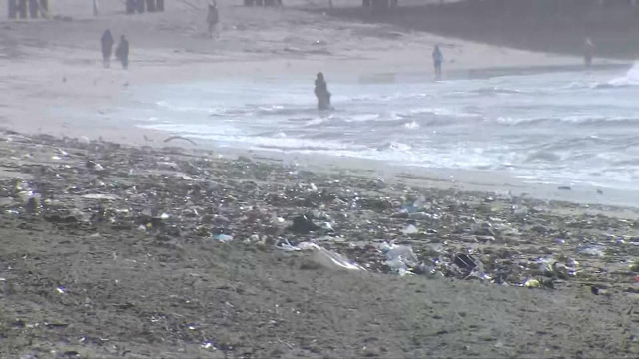 Esta playa en California quedó convertida en un basurero tras una fuerte tormenta