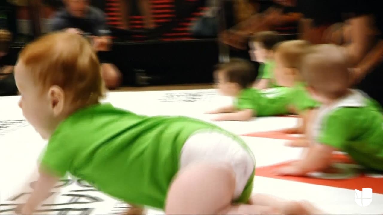 Para alzarse con el trofeo, los cerca de 30 participantes debían gatear unos 10 pues.
