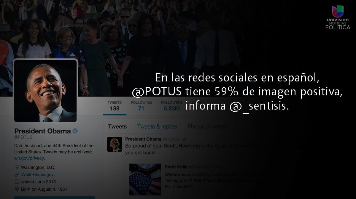 El "sentimiento" de la audiencia respecto a Obama, según Séntisis, fue positivo entre los hispanohablantes de la tuitósfera ( nota: el análisis de sentimiento no es una ciencia exacta, se basa en lo que los usuarios están conversando en tiempo real en las redes sociales en un momento particular).