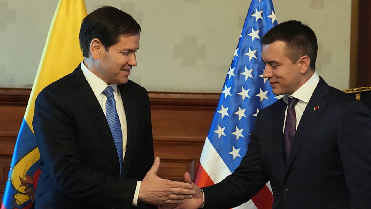 El secretario de Estado de Estados Unidos, Marco Rubio, y el presidente de Ecuador, Daniel Noboa, se reunieron este jueves en Quito. El representante del gobierno estadounidense declaró a 'Los Lobos' y 'Los Choneros' como organizaciones narcoterroristas y ambos países se comprometieron a trabajar de manera conjunta contra ellos.