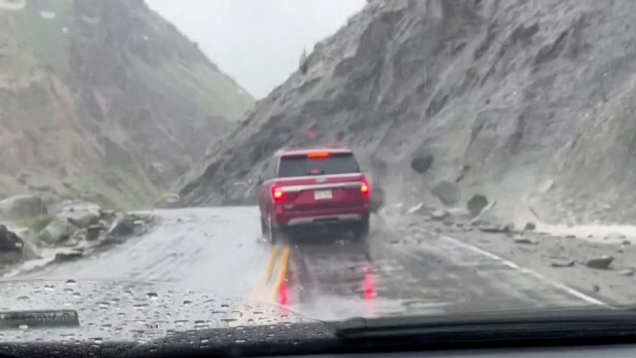 Graban el momento en que unas rocas caen sobre un auto que evacuaba Yellowstone