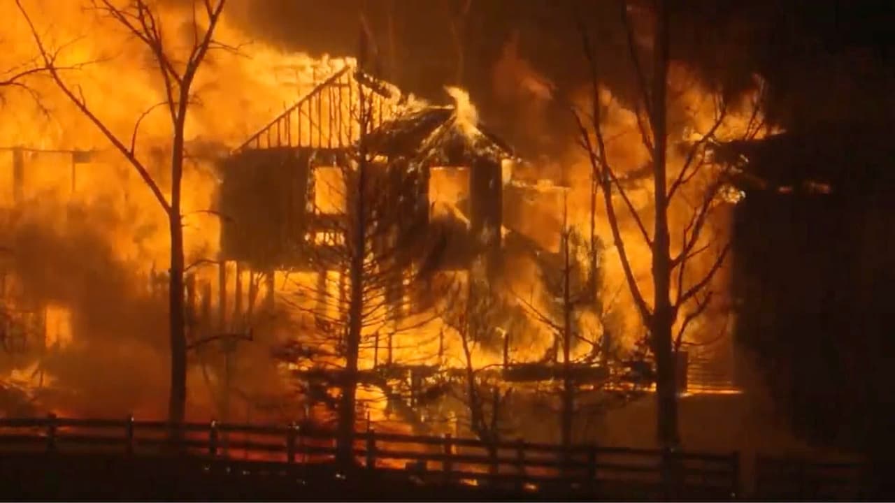 Imágenes de la televisora CBS muestran lo que parece ser un complejo de apartamentos en llamas, mientras los bomberos intentan apagar el fuego.