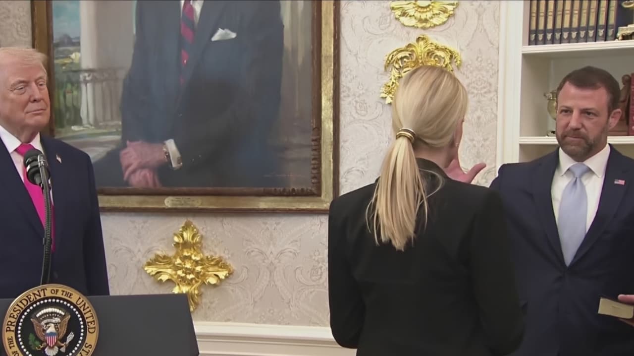 Trump participó en la ceremonia de toma de posesión de Markwayne Mullin, como nuevo secretario de Seguridad Nacional