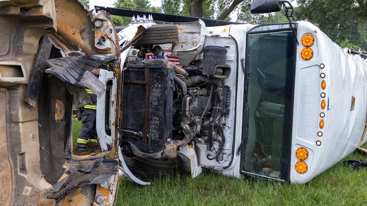 Un testigo citado por el Ocala StarBanner le dijo a la patrulla de carreteras que una camioneta Ford Ranger que viajaba en el carril contrario de repente se movió hacia el sentido por el que circulaba el bus, provocando un choque.
