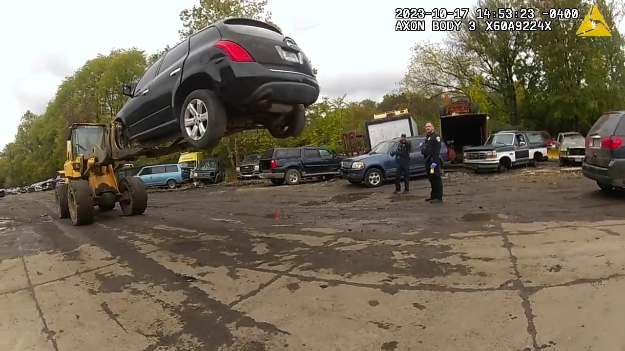 Otra golfista capturó en video el momento en que las camionetas de la policía cruzan a toda velocidad el campo de golf Lincoln Park en dirección al baño portátil. Después se ve el momento en que un hombre sale del contendor bañado en desechos y con las manos en alto.