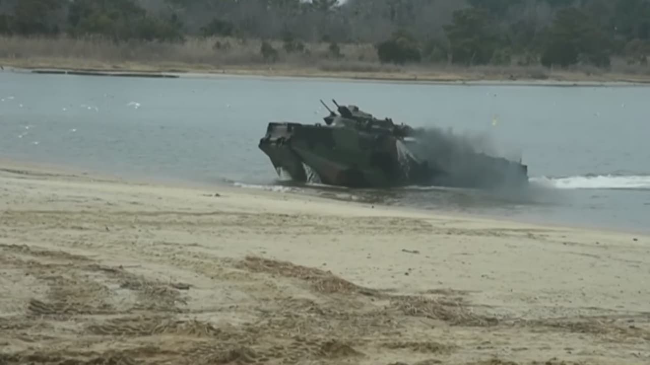 El vehículo anfibio más común del Cuerpo de Marines de EEUU es el AAV-P7/A1, que funciona como un transporte de tropas y transporta personal de agua a tierra.