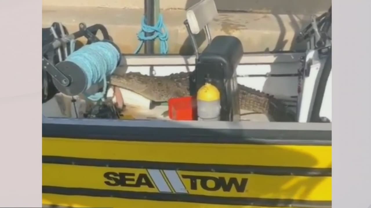 UPDATE - We've independently confirmed the alligator is in the lagoon and state reptile specialists say its between 4 and 5 feet long. The reptile will be humanely trapped tonight and relocated to a zoo for veterinary evaluation