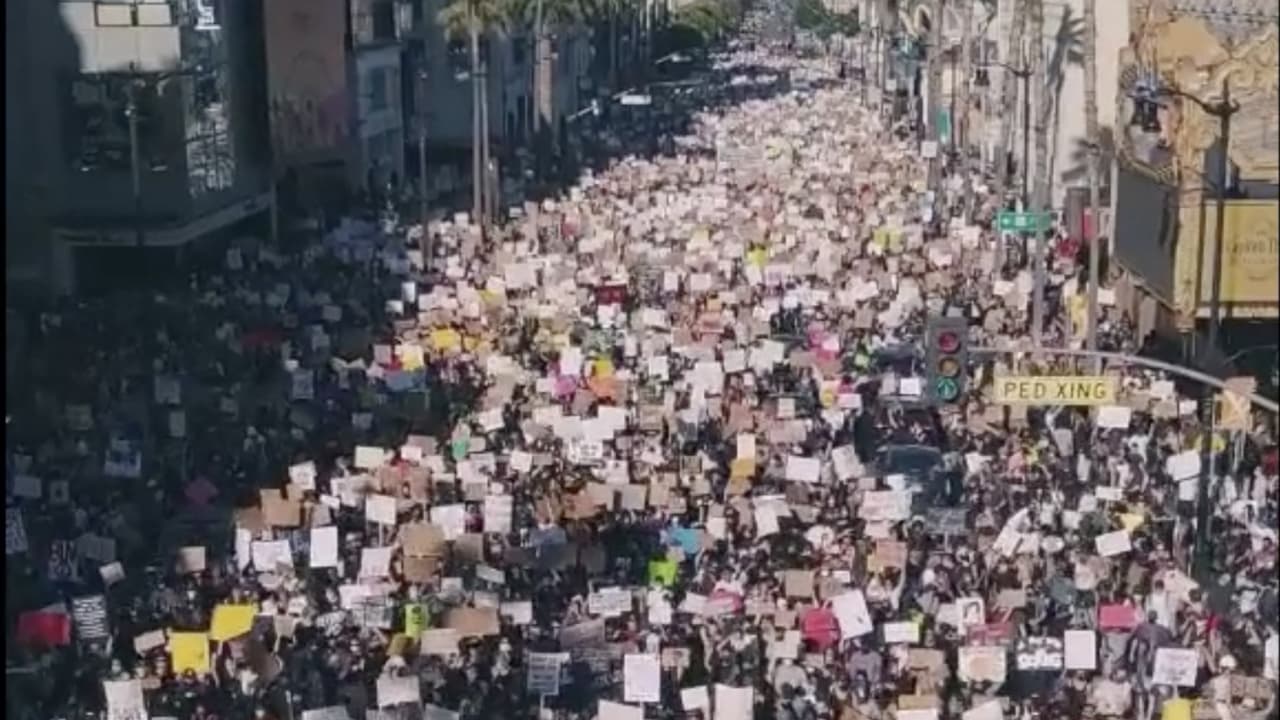 Estas son las impresionantes imágenes que captó un dron durante la marcha contra el racismo en Hollywood