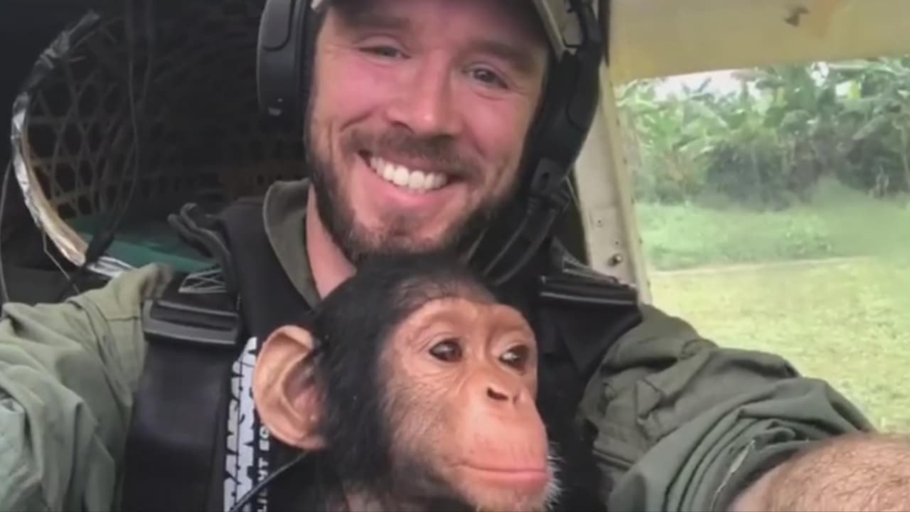 Este bebé chimpancé rescatado hace de ‘copiloto’ en su vuelo hacia un nuevo hogar