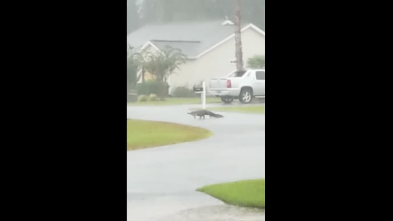Este caimán salió a pasear en el medio de un vecindario durante el huracán Florence